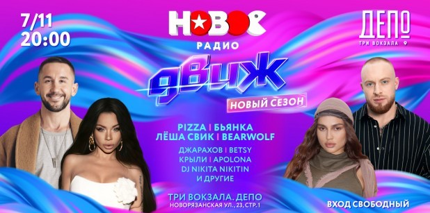 «Новое Радио ДВИЖ»: PIZZA, Лёша Свик, Бьянка и BEARWOLF исполнят свои суперхиты в «Депо. Три вокзала»!
